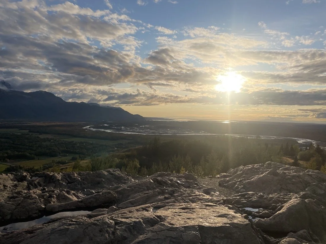 The Blueberry Knoll Trail near Palmer offers sweeping views of surrounding mountains and the vast agricultural lands of the Mat-Su region. It’s a phenomenal year-round hike in Palmer.