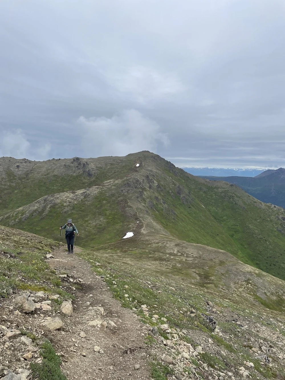 Rendezvous Peak is a 3.2 mile roundtrip hike with an elevation gain of approximately 1,400 feet. Located in Arctic Valley, the trail is a steady uphill climb following a creek for a mile until it reaches the saddle. Once at the saddle, the views open up and you are rewarded with sweeping views of South Fork Eagle River and many high peaks. At the saddle, the trail hangs a right and starts a fairly steep slope up to the summit. From the summit, you are rewarded with 360 degree views of the valleys below, mountain peaks looming all around. On a a clear day, Denali is visible in the far off distance.